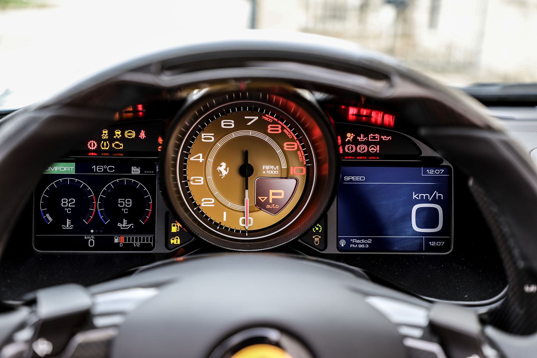 \nFreins avant: disques ventillés et percés en carbone céramique à 6 pistons, 390 mm