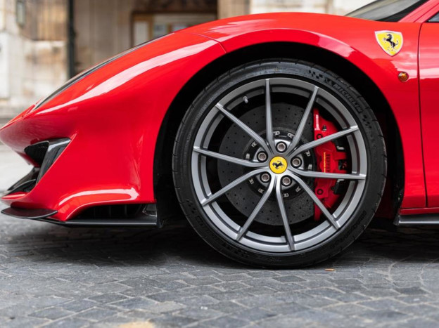 \nFreins avant: disques ventillés et percés en carbone céramique à 6 pistons, 398 mm